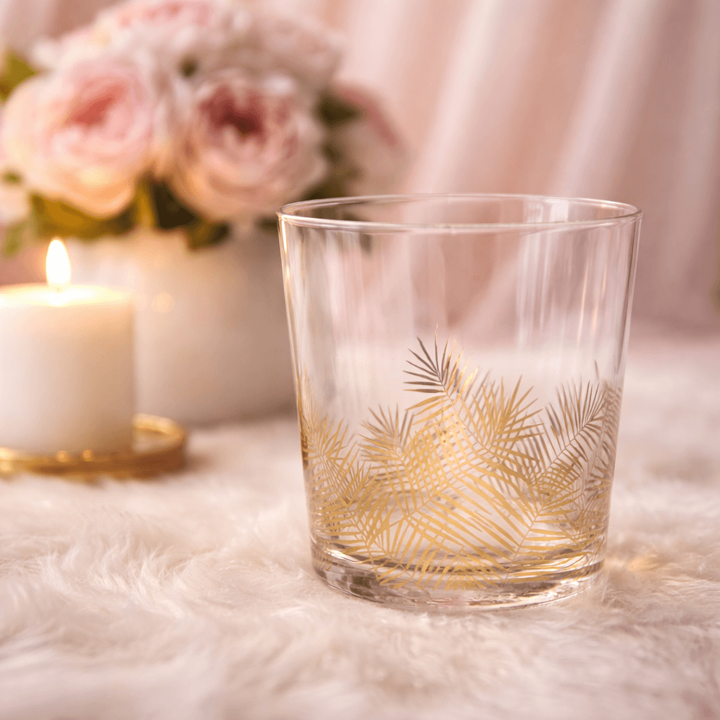 Glas mit Goldblatt, als Trinkglas oder Kerzenglas verwendbar
