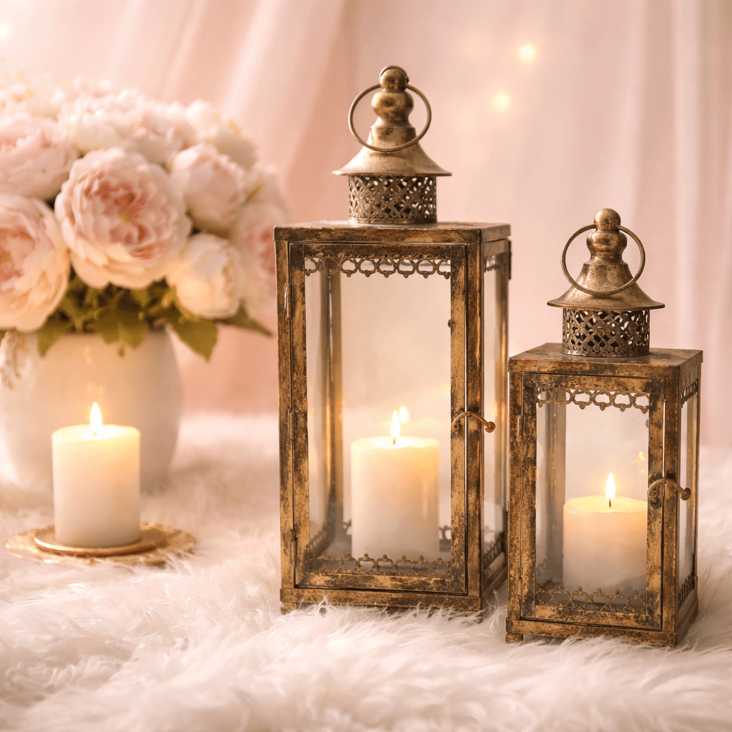 Laterne gold antik, klein und groß als Set